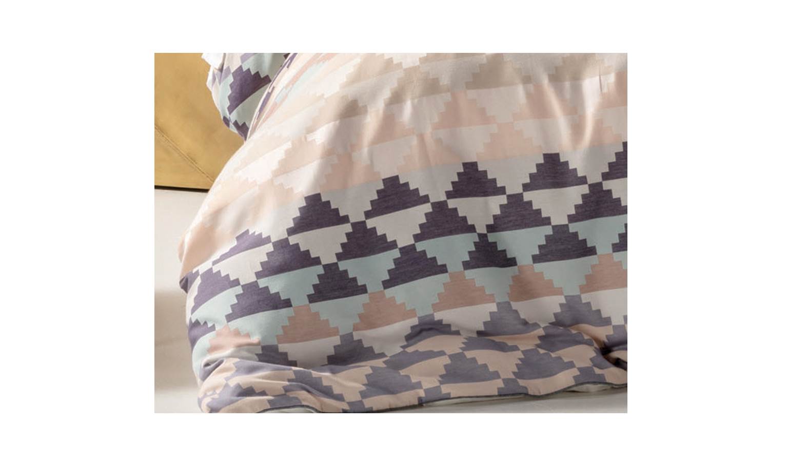 Add your new quilt cover set with a brand Linen House. This featured product is a striking geometric, on-trend design. Showcasing a medley of stony blues, clay, peach, and navy on a jacquard blend.