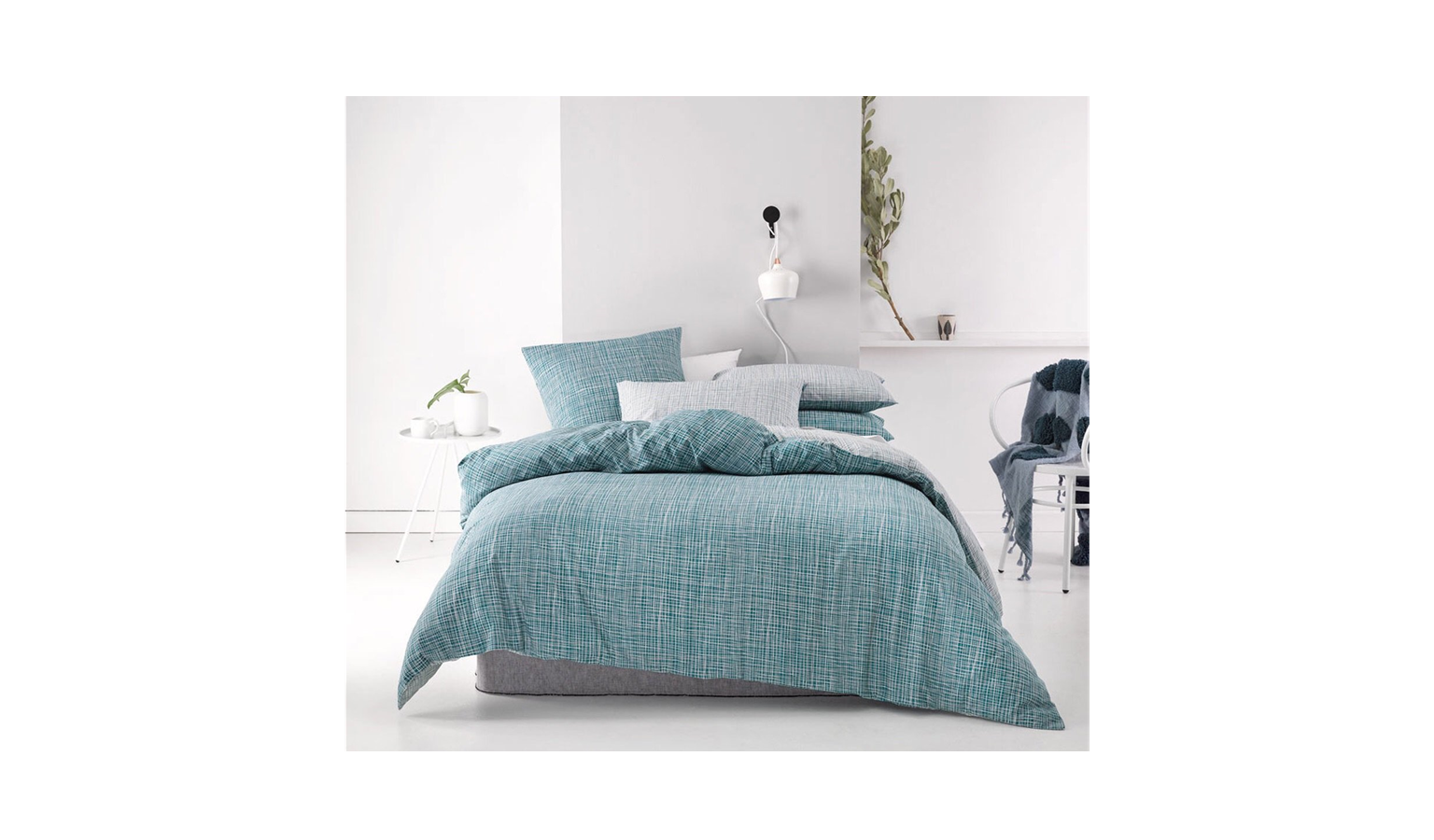 Stylish and modern, this Meiko Teal King bed quilt cover set features a subtle mesh pattern that would give any bedroom a fresh, contemporary feel.