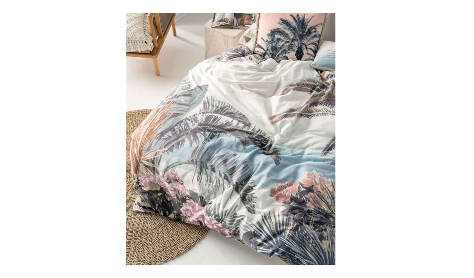 Add your new quilt cover set with a brand Linen House. This featured product is whisked away to the tropics with that perfectly filtered, vintage photograph look in a colorful botanical design.
