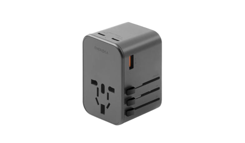 All-in-one, 3-USB GaN powered travel adapter with US/UK/AU/EU/Asia AC outlet plug converters. Compatible in over 150 most commonly visited countries.