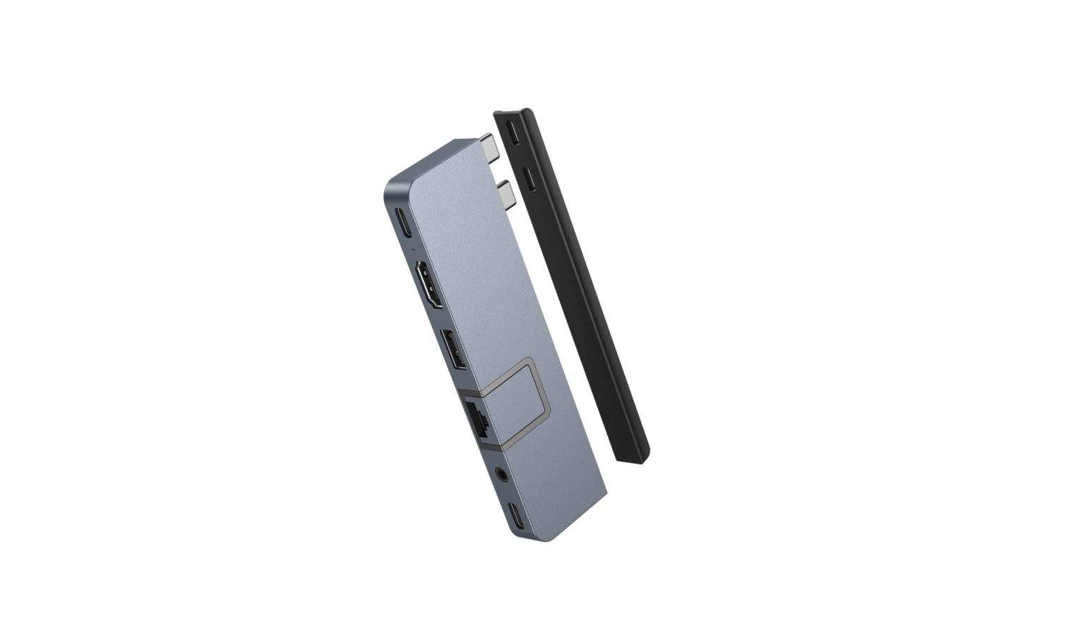 HyperDrive DUO PRO is a 7-port, form-fitting USB-C hub designed for the new 14” & 16” MacBook Pro that also works with any 2016-2020 MacBook. This form-fit hub instantly provides Gigabit Ethernet, USB-A 5Gbps, USB-C 5Gbps, MicroSD 104 MB/s, and a 3.5mm Audio Combo Jack. It also features HDMI 4K 60Hz display support and a Thunderbolt 4 / USB4 Compatible Port (40Gbps, 100W PD, 6K 60Hz video). Additionally, the universal USB-C adapter provides compatibility with Chromebook, PC, or USB-C iPad, and the extended USB-C connectors allow for compatibility with or without a protective case.