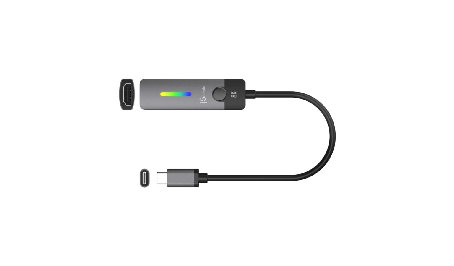 J5 USB-C to HDMI 2.1 8K Adapter (JCA157) allows you to conveniently connect your gaming laptop, MacBook, Chromebook, or tablet to an 8K UHD / 4K 144Hz external monitor, 8K UHDTV, projector and other display device using an HDMI input. This adapter offers the latest USB-C to 8K or 4K 144Hz HDMI connection, letting you hook up an HDMI display to a gaming laptop, tablet, or phone that supports DisplayPort Alternate Mode for a plug and play connection.