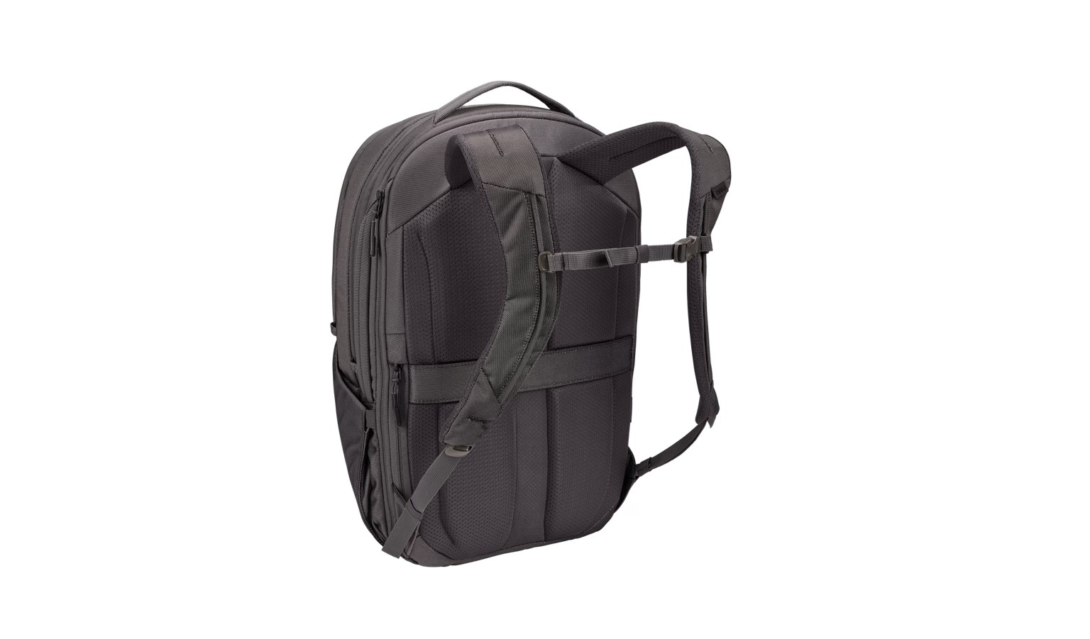 The padded air mesh back panel with airflow is ventilated and comfortable to carry, while the sternum strap stabilizes the load.