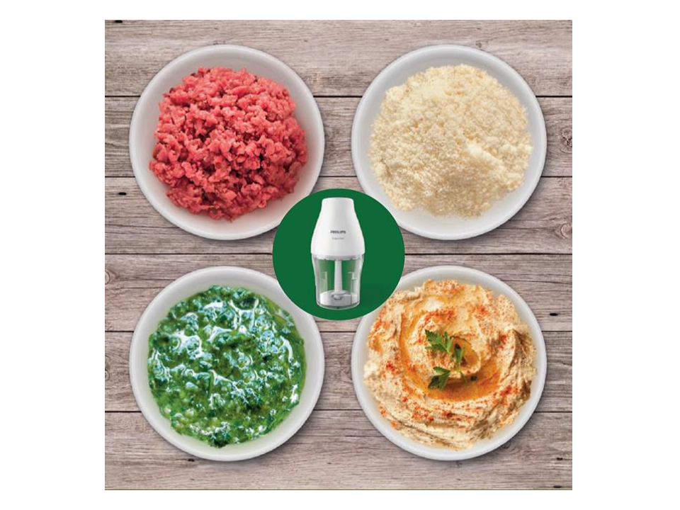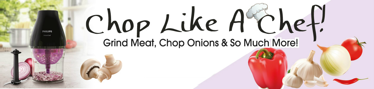 Thanks to Philips OnionChef chopper, you can now chop like a professional chef. The ChopDrop technology gives you dry, regular pieces of onion and other ingredients. Thanks to the separate high speed blade you can also grind meat, chop herbs and so much more.