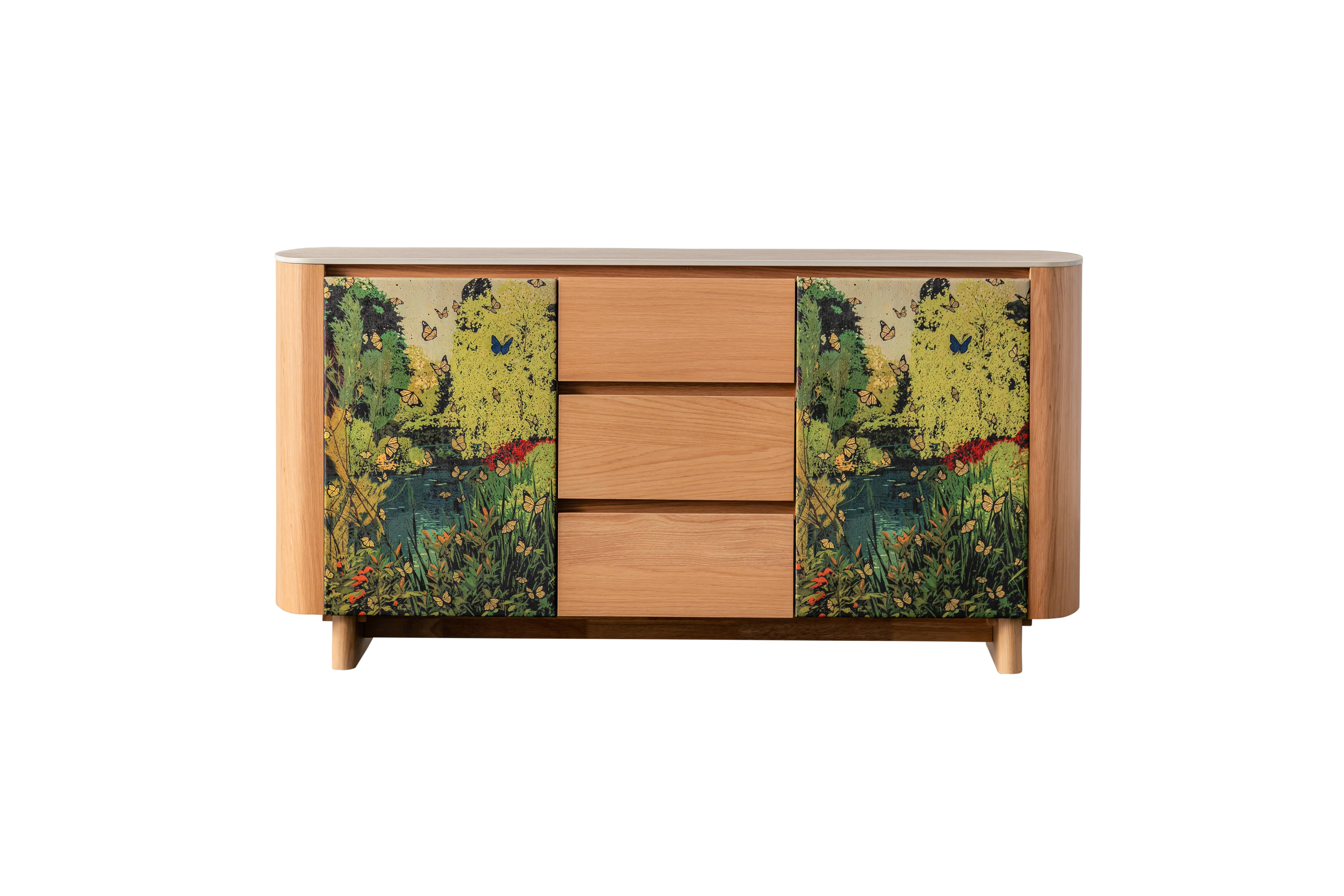 Add a touch of elegance and artistry to your living space with the WILLOW Wooden Buffet Cabinet from The Promised Garden II collection. This statement piece combines functionality with designer aesthetics, making it perfect for modern homes that appreciate fine craftsmanship.
