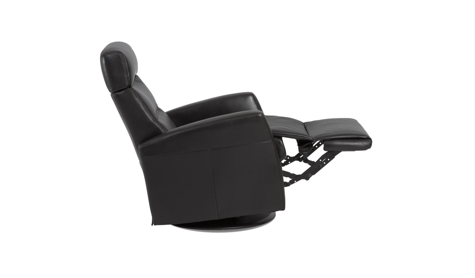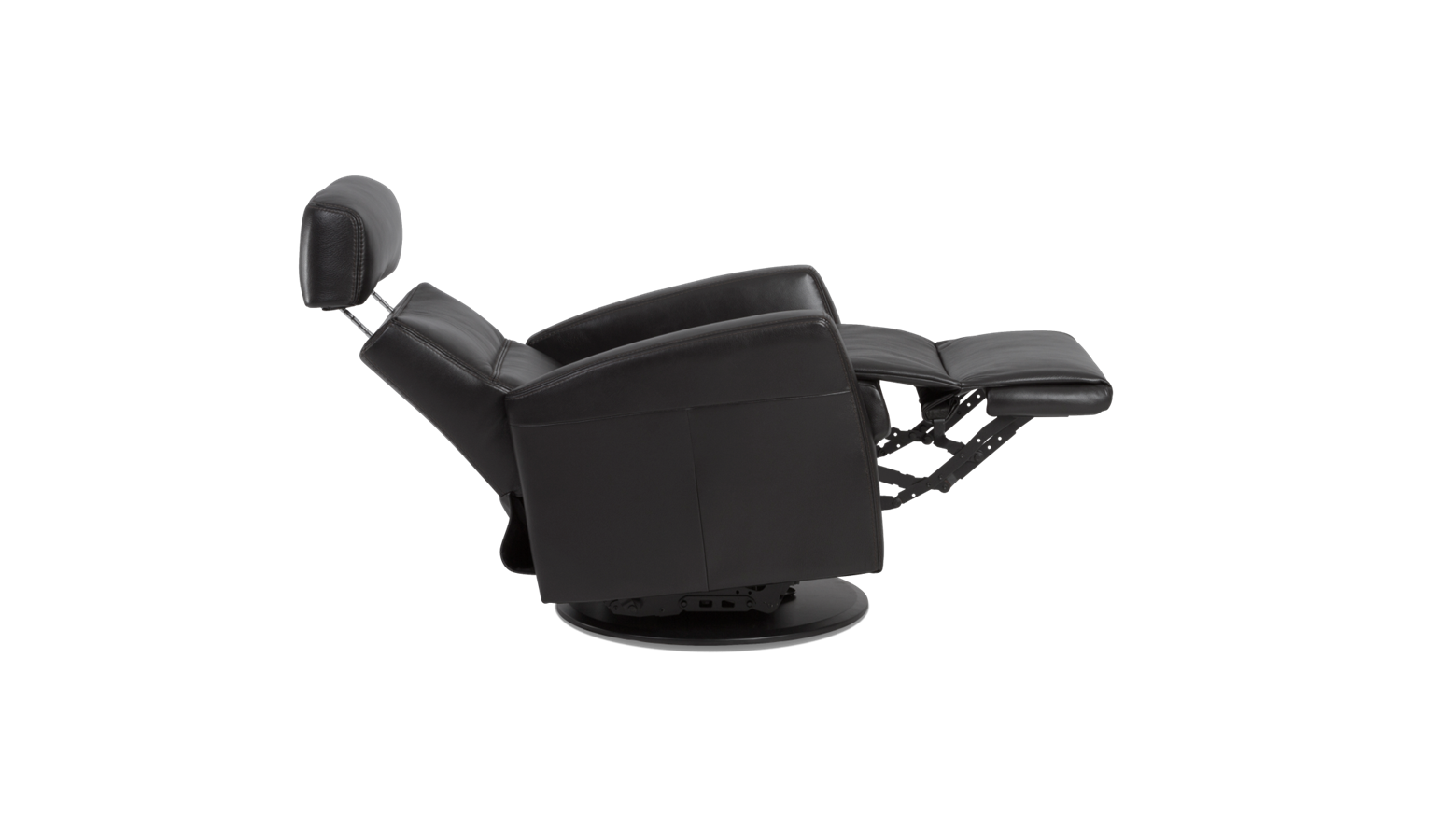 The lateral tufted backrest is ergonomically formed to provide wonderful complete back support. Combined with a full chaise style leg rest and telescoping/tilting headrest, the Divani is a supremely comfortable contemporary recliner.