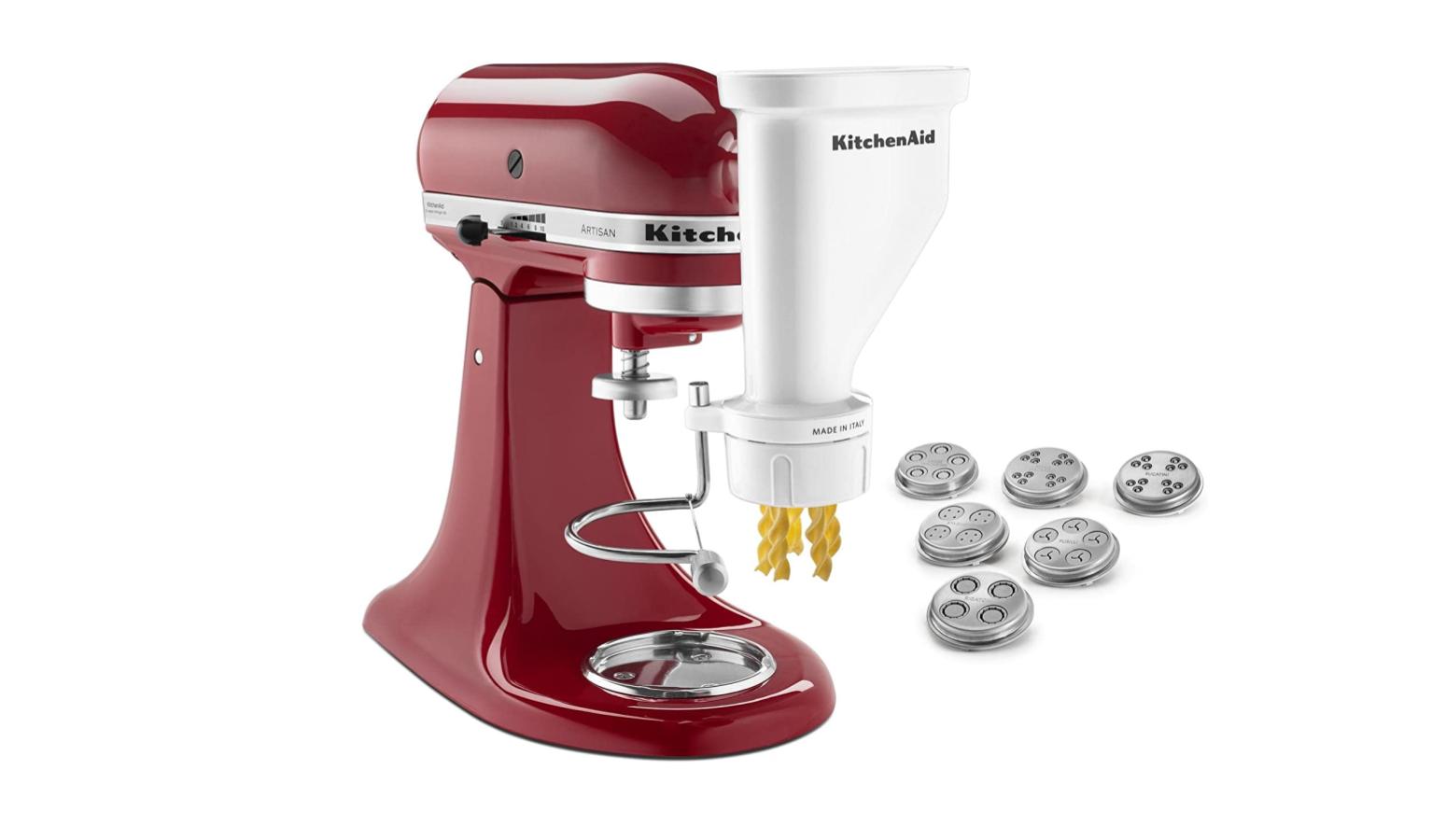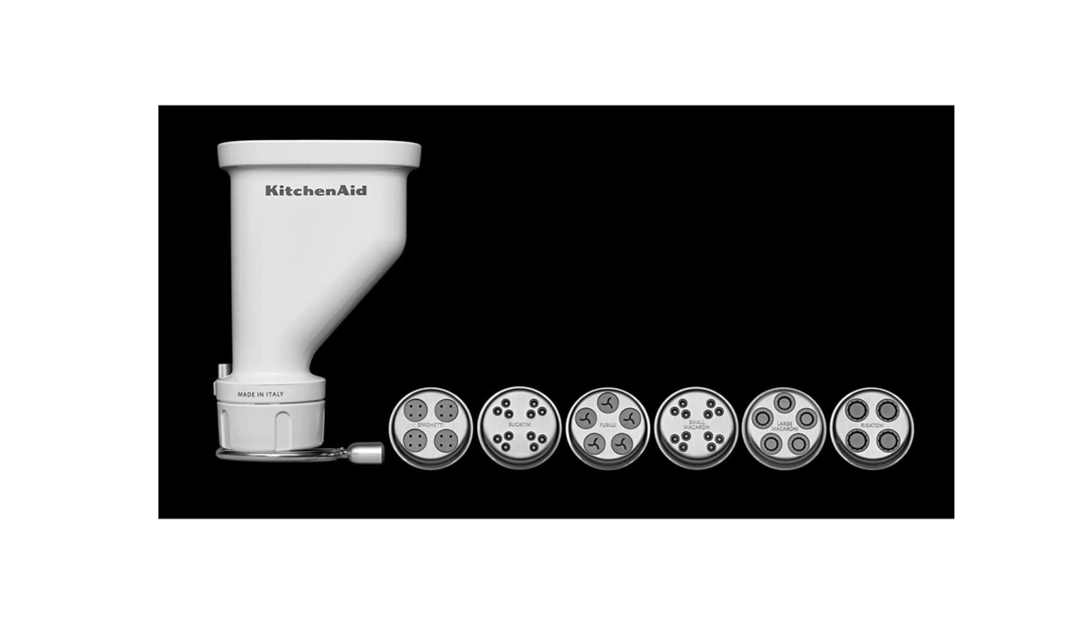Turn your kitchen into a pasta-making workshop with the pasta press that attaches directly to your KitchenAid Stand Mixer. With six interchangeable pasta plates, you can create fresh strands of spaghetti or bucatini pastas, as well as short pastas like rigatoni, fusilli, large macaroni or small macaroni.
