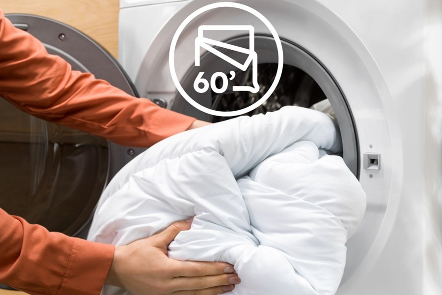 DuvetCare 60 uses heated vapor to treat and dry your king-sized duvets or comforters in just 60 minutes. The heated vapor helps reduce water and energy consumption while removing odors – like sweat, and reducing dust mites in one simple program.