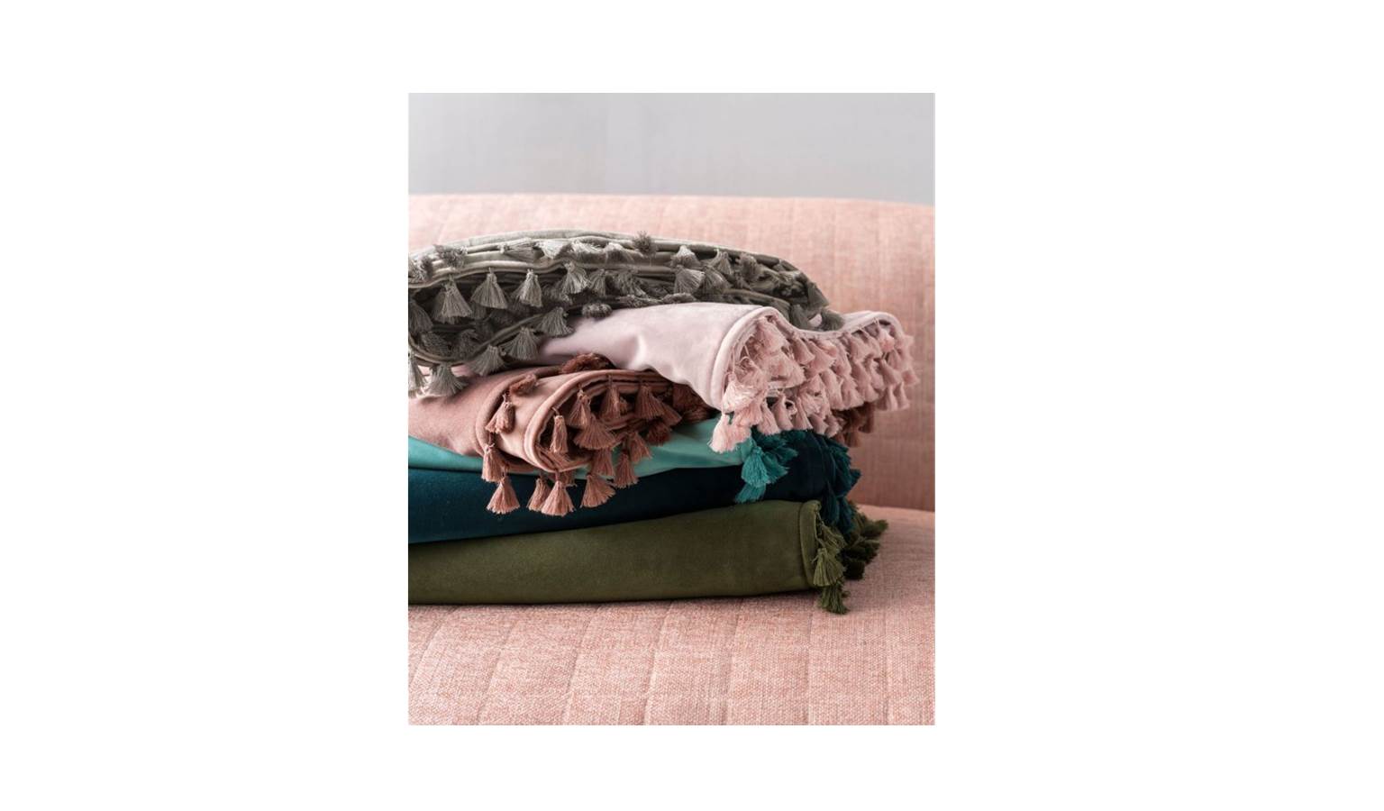 Add your new room deco item with a brand Linen House. With its chic border of silky mini tassels, this velvet throw in serene aqua will drape ever-so beautifully over your bed, sofa and of course, yourself