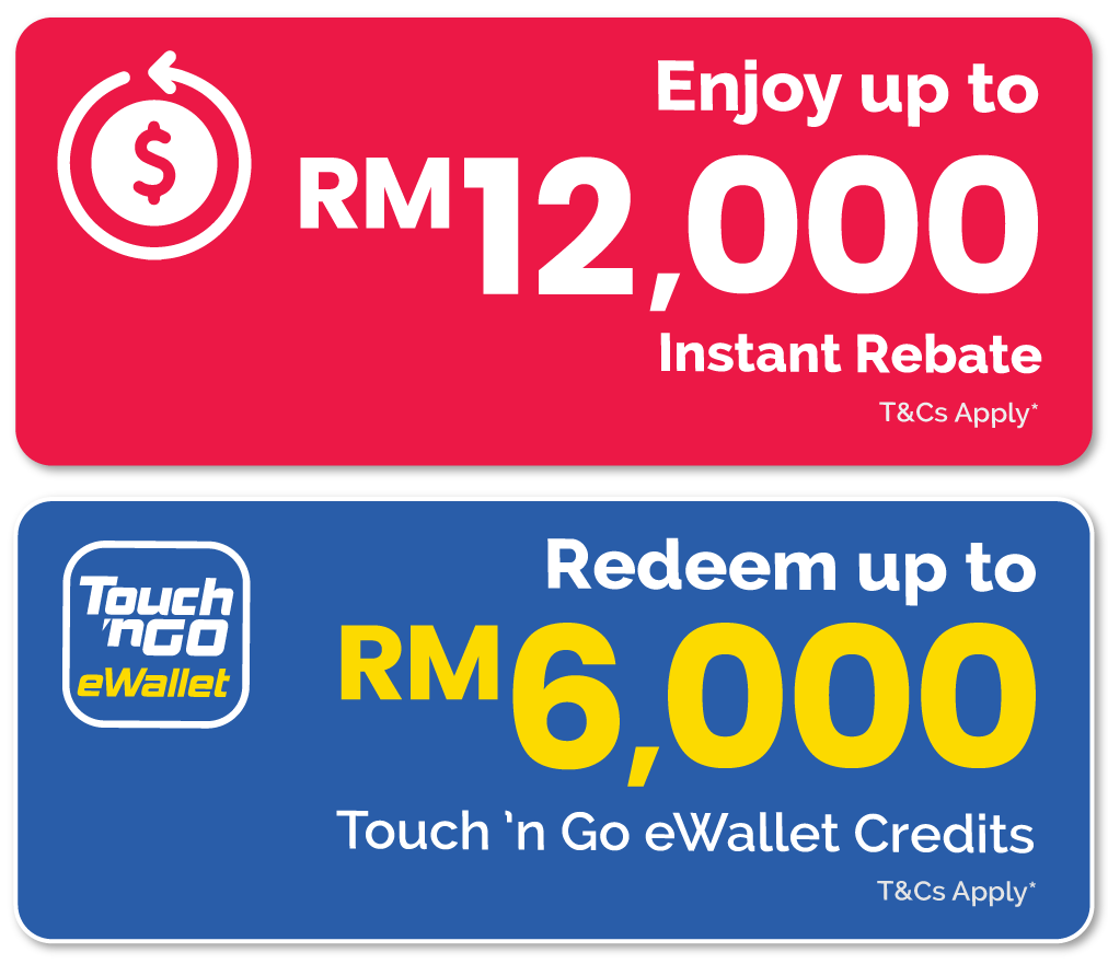 • Instant Rebates and Touch 'n Go eWallet credits are applicable to selected products and models from participating brands.