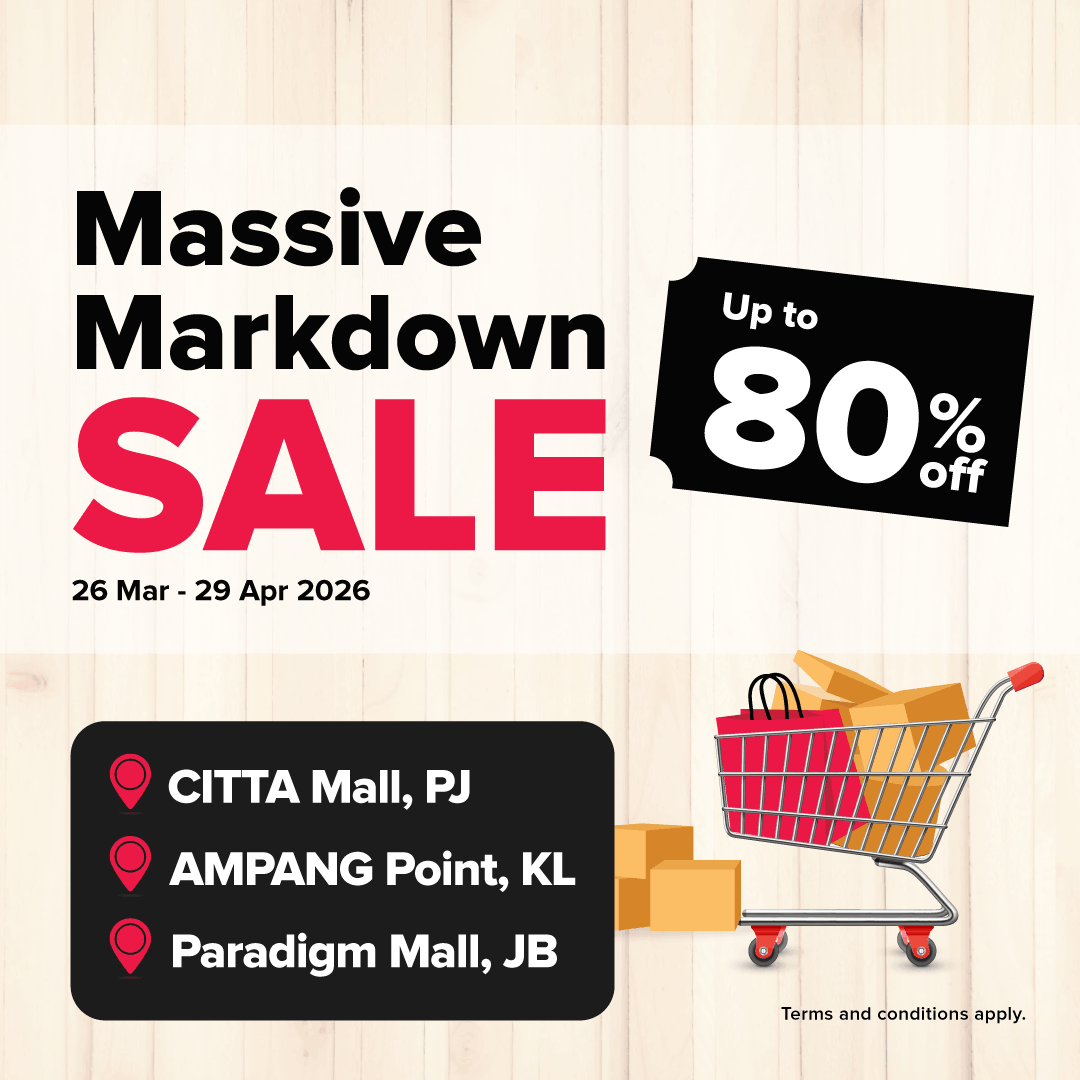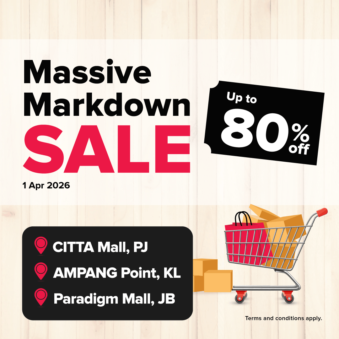 Featured products are available for delivery and pick up at Harvey Norman Ampang Point Kuala Lumpur, Citta Mall Petaling Jaya and Paradigm Mall Johor Bahru only.