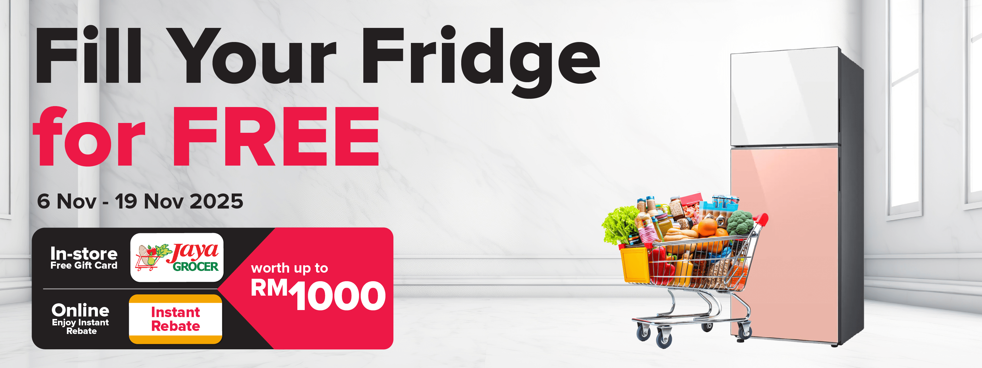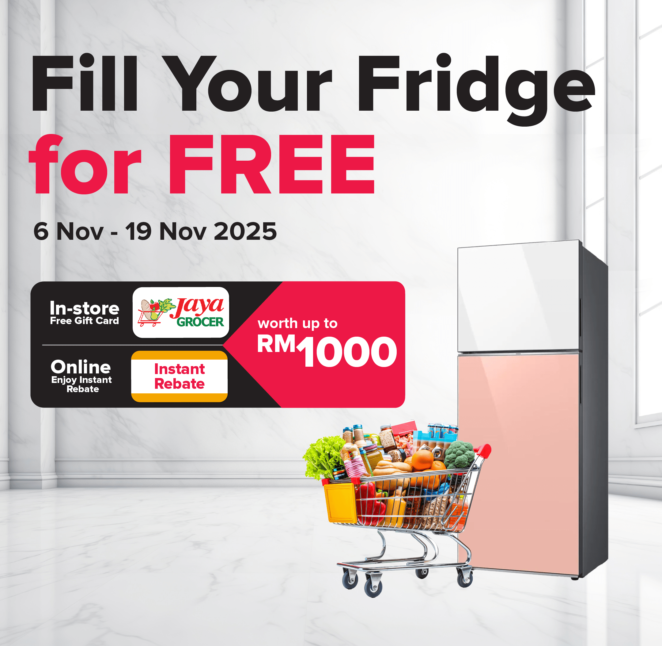 • Customers who purchase online will receive an instant rebate, while in-store purchases are eligible for a free Jaya Grocer Gift Card.