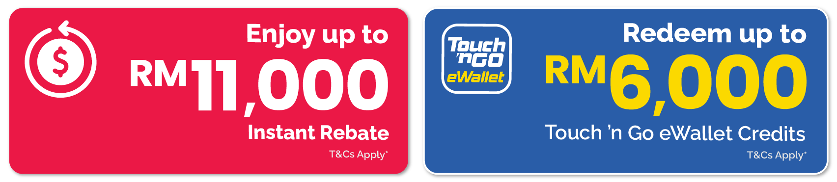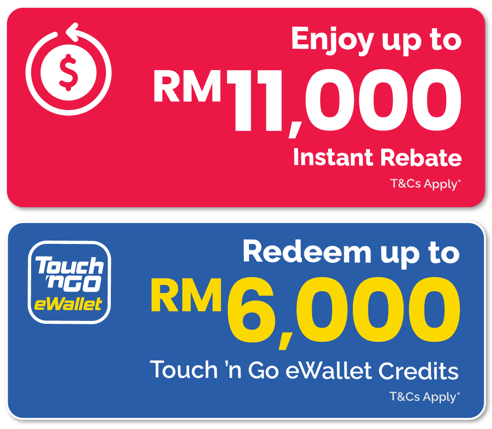 • Instant Rebates and Touch 'n Go eWallet credits are applicable to selected products and models from participating brands.