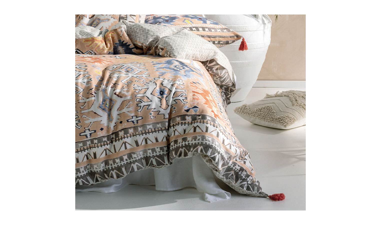 Add your new quilt cover set with a brand Linen House. This featured product is a Persian beauty in sun-kissed hues, Fransisca's expressive print on a soft garment-washed cotton slub enjoys a worldly and feminine aesthetic