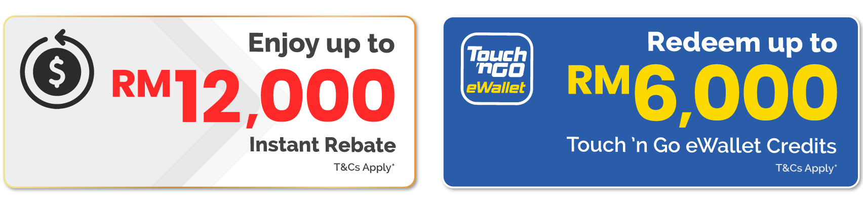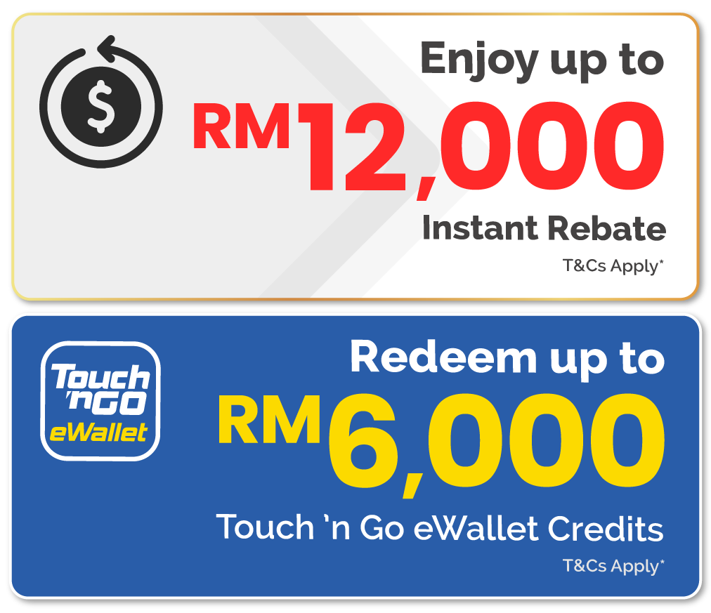 • Instant Rebates and Touch 'n Go eWallet credits are applicable to selected products and models from participating brands.