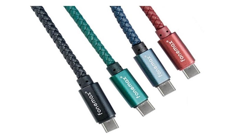 Fonemax 1.0M leather pro USB cable for type-C supports 3A high speed output (max), super data transmission, and fast current tranmission. It features supreme conductivity cable, delicate quality aluminium case (connector) and protective non-tearable leather braiding. It is also water resistant and tangle free.