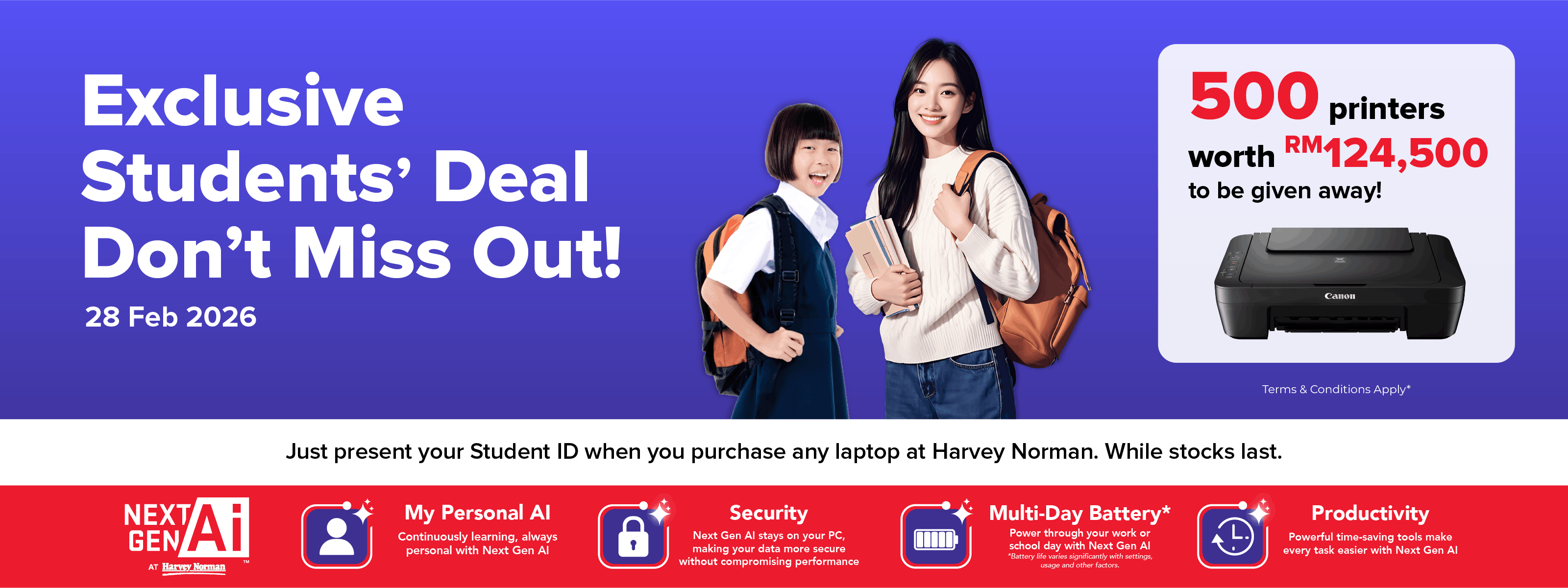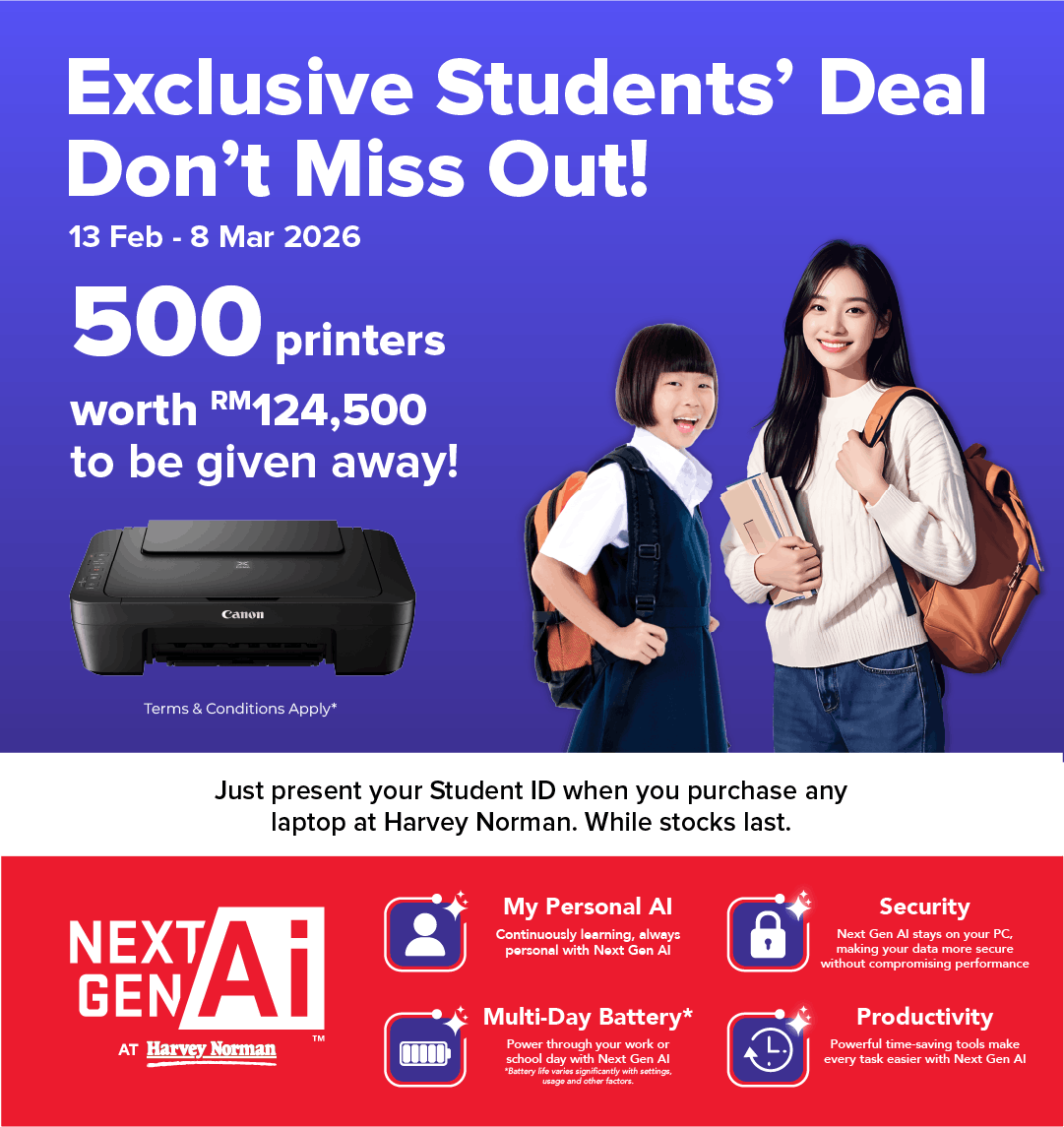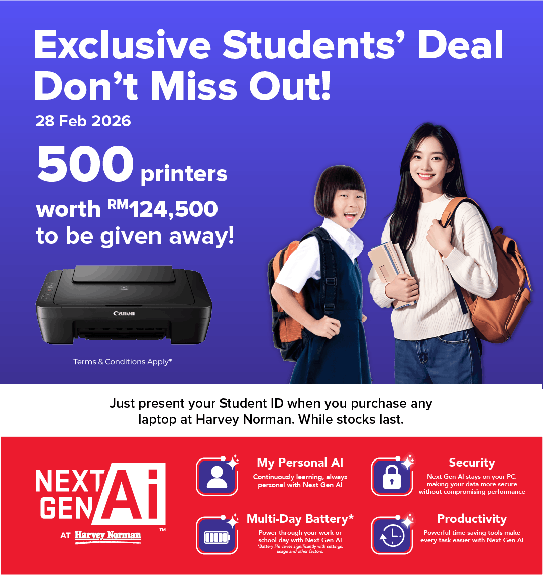 Free Canon MG2570S Printer worth RM249 with purchase selected laptops!