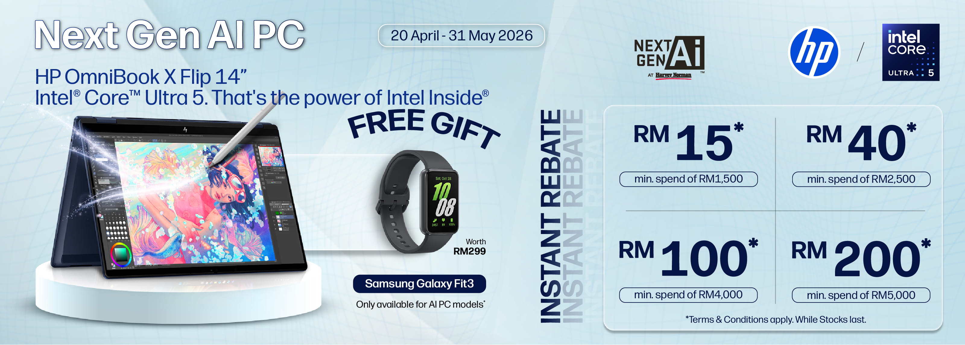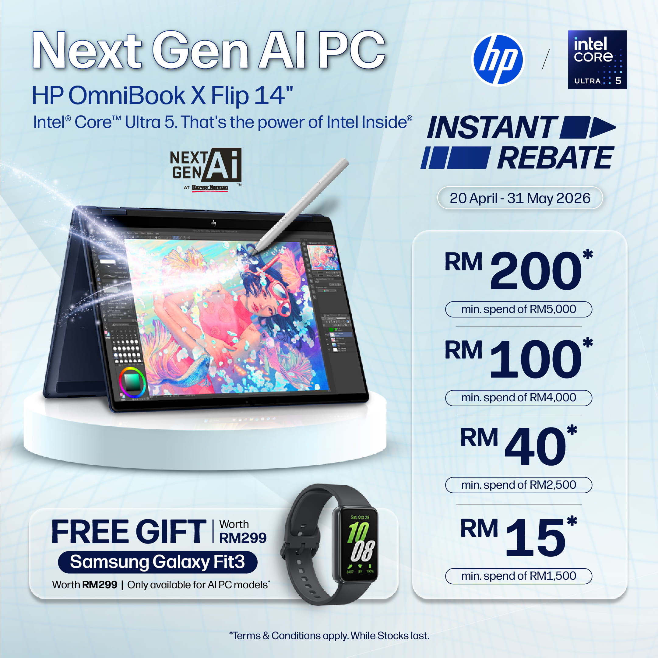 Free Samsung Galaxy Fit3 with purchase selected laptops only.