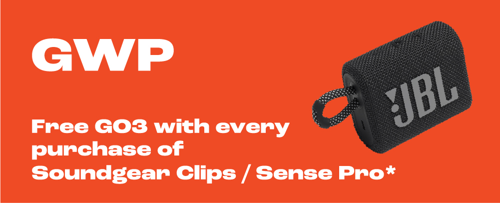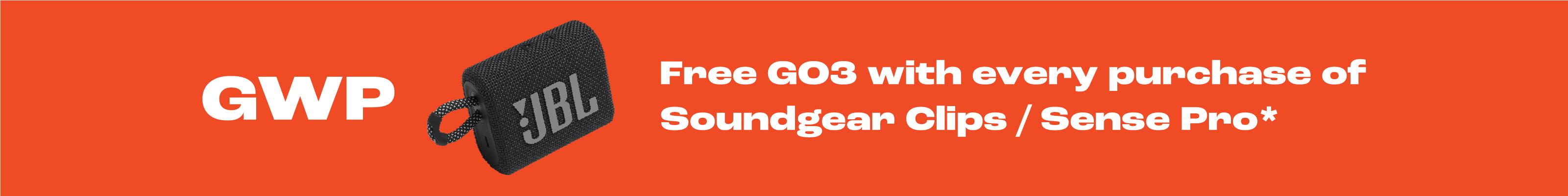 Customers who purchase JBL Soundgear Clips or JBL Sense Pro are entitled to receive one (1) free JBL Go 3, while stocks last.
