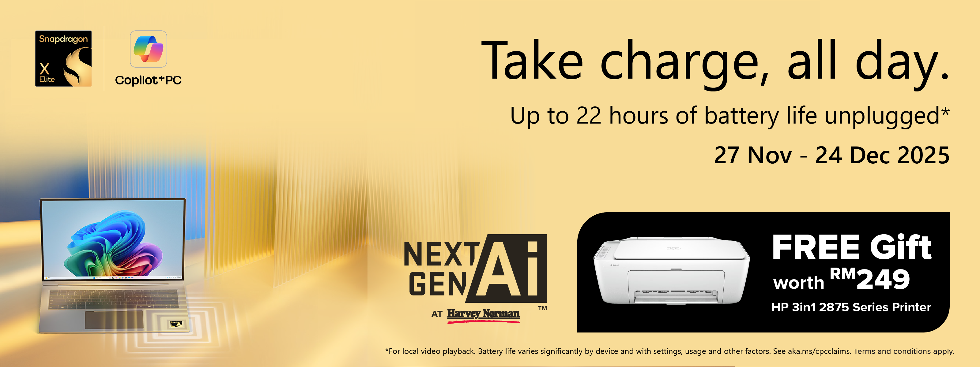 Free gift HP 2875 All-in-One Printer will be delivered with the purchased item and subject to stock availability.