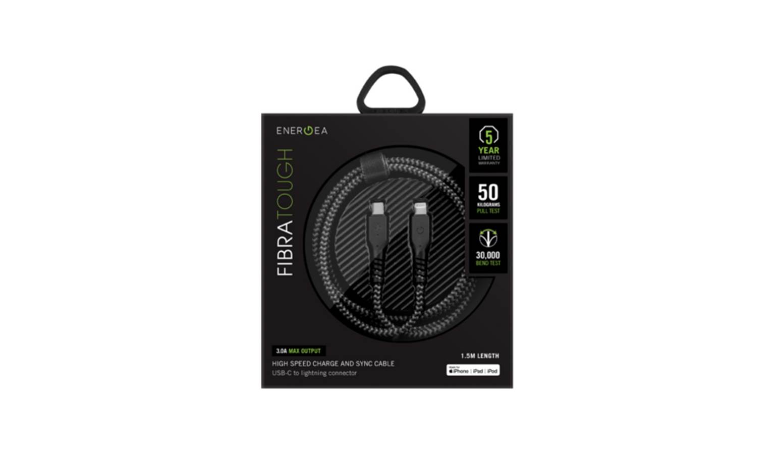 Add your new lightning cable with brand Energea, this featured product have a soft fibre threads braided together with 1.5 times increased thread density to create revolutionary FibraTough.