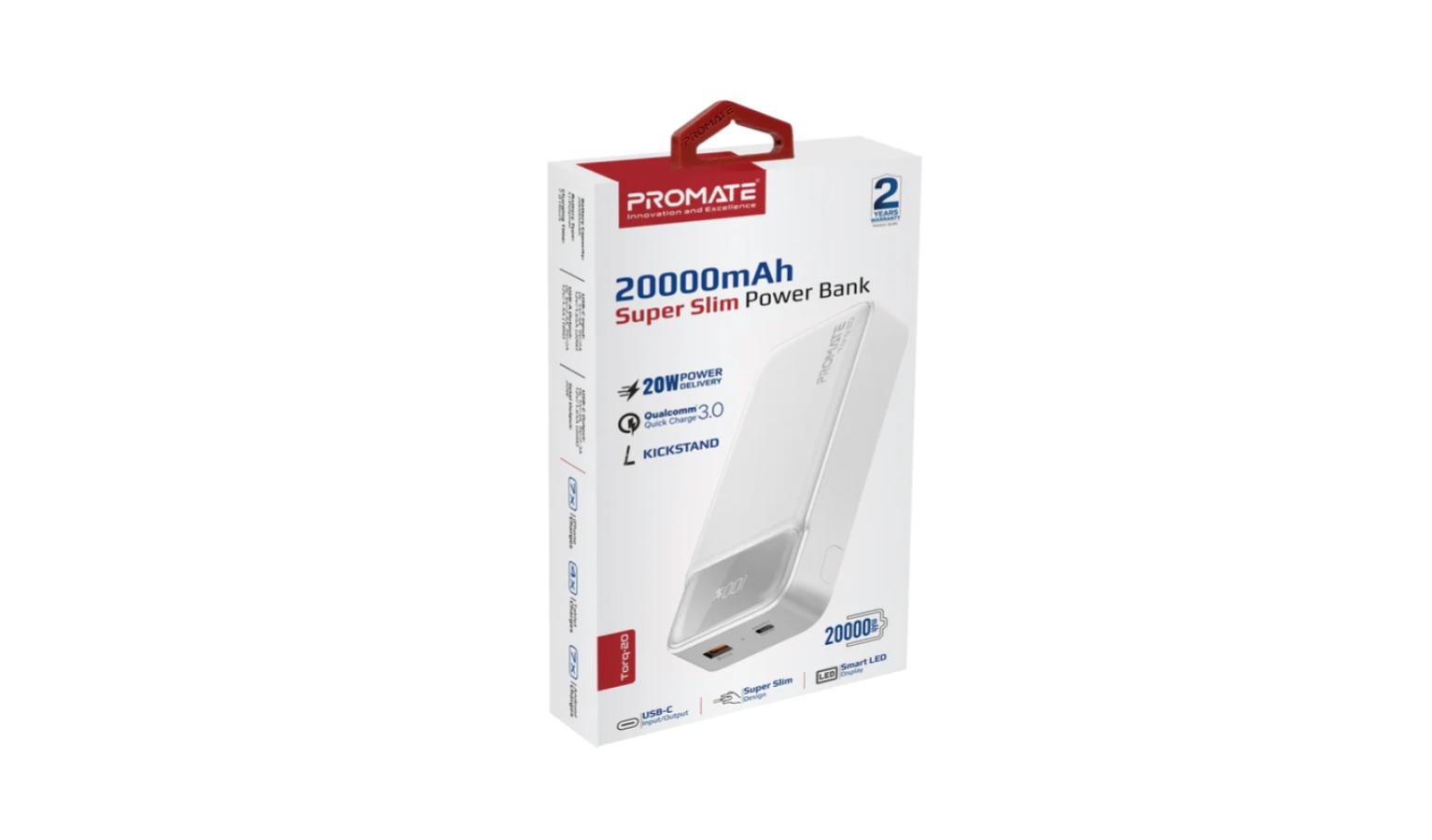 Charge on the go with Torq, an ultra slim 20000mAh power bank with 20W power delivery and Quick Charge 3.0 ports. Adaptive charging technology ensures the right amount of current is supplied as per the device being charged.