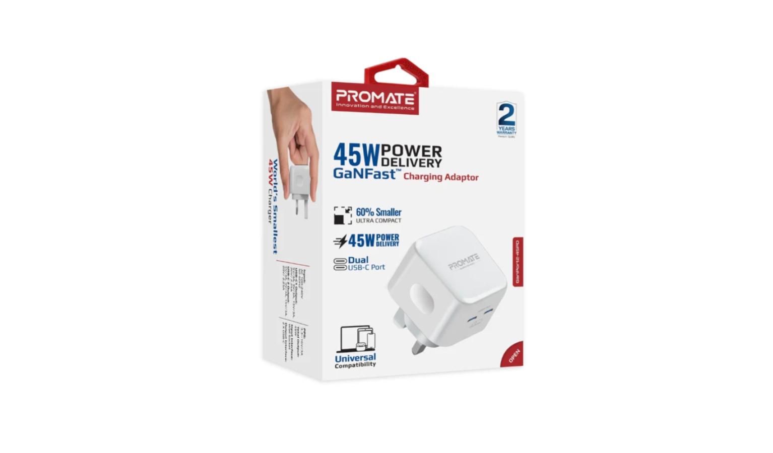 As our most advanced charging technology ever, GanPort2-45PD charges virtually any device at its fastest possible speed. The Dual-Port Wall Charger with Upgraded Compatibility provides 50% smaller form factor along with 50% faster charging. Charge 2 devices simultaneously through the USB-C ports.