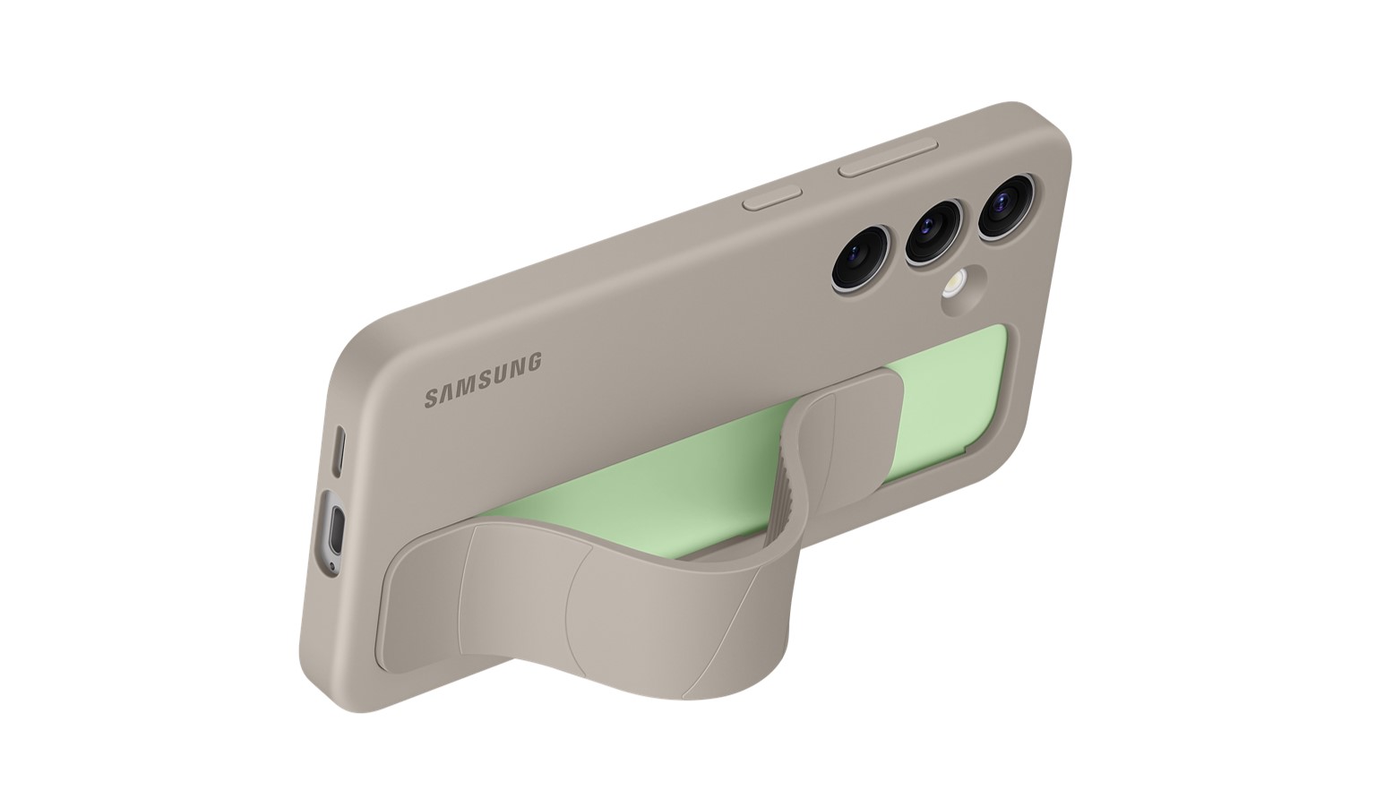The Samsung Galaxy S24 Standing Grip Case in Taupe (EF-GS921CUEGWW) is a protective case that combines style, functionality, and convenience. Made from durable materials, it provides reliable protection against drops, scratches, and everyday wear and tear. The case features an integrated stand and a built-in grip, making it easier to hold and position your phone for hands-free viewing. The taupe color offers a sleek, neutral look while maintaining a slim profile. This case also ensures easy access to all buttons, ports, and features of the Galaxy S24.