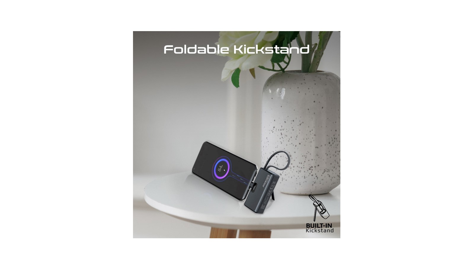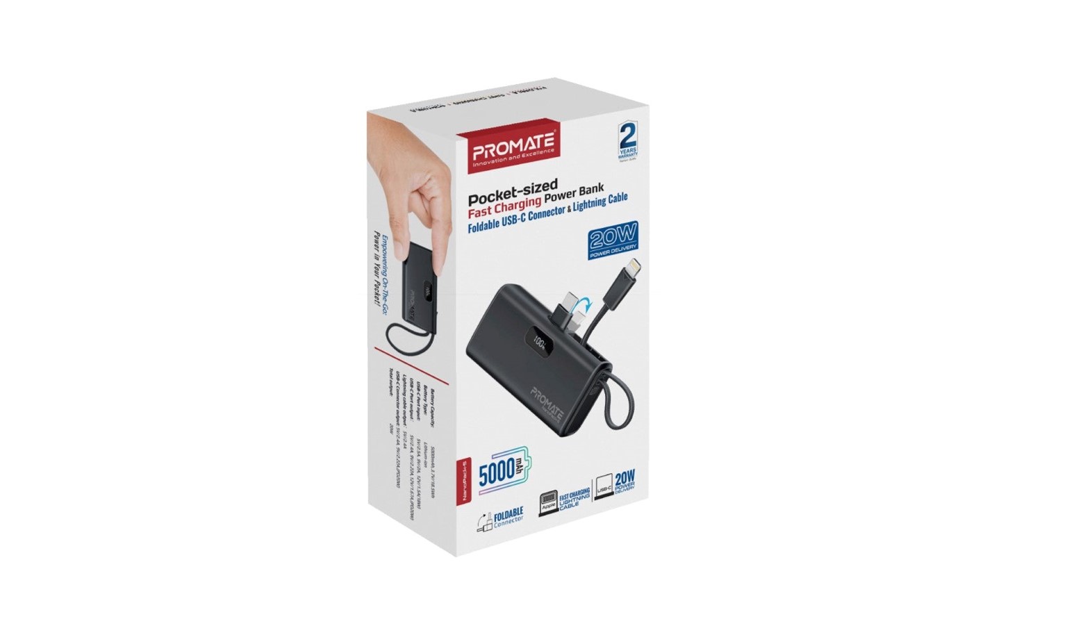 Experience uncompromised power and convenience with the NanoPack-5, your go-to companion for portable charging. Boasting a robust 5000mAh lithium-ion battery, NanoPack-5 ensures your devices are always powered up. Say goodbye to cable clutter with the built-in 18W Power Delivery Lightning cable, while the 20W Power Delivery port guarantees blazing-fast charging for your USB-C devices. Its foldable 20W USB-C Power Delivery connector simplifies charging even further. Safety is paramount with the Multi Protect System, guarding against over-charging and high-voltage issues. Stay informed with the smart LED screen and revel in NanoPack-5's ultra-compact design with a foldable kickstand, making it the perfect travel companion.