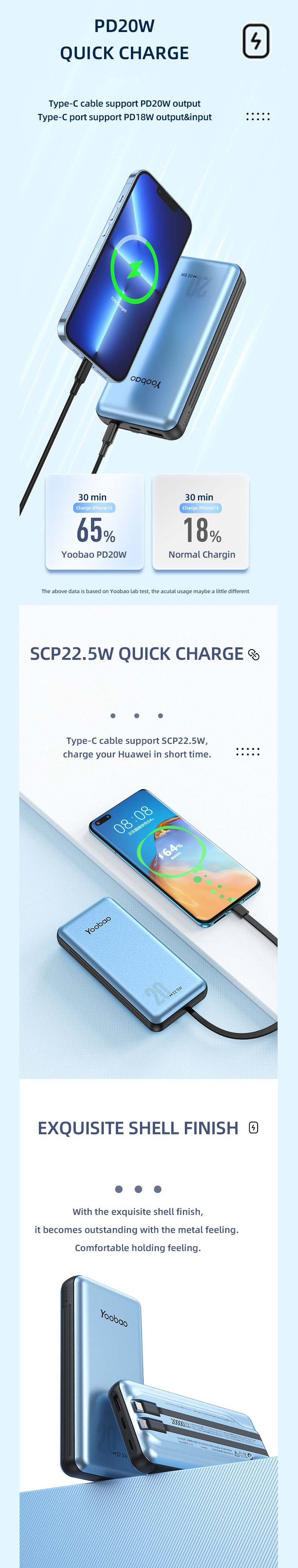 Charge your device anytime and anywhere with Yoobao LC6 20000mAH Ultra-Thin Built-in Cable Quick Charge Power Bank. Now available at Harvey Norman Malaysia.