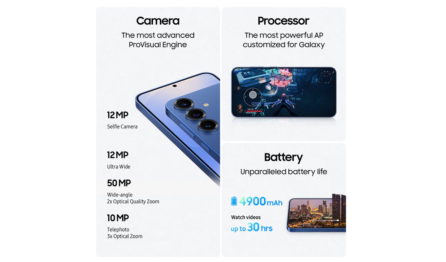 Unparalleled battery life-Thanks to our pioneering mDNIe technology built into custom-made AP and software optimization, Galaxy S25's battery usage time is enhanced for you to enjoy hours of watching videos.