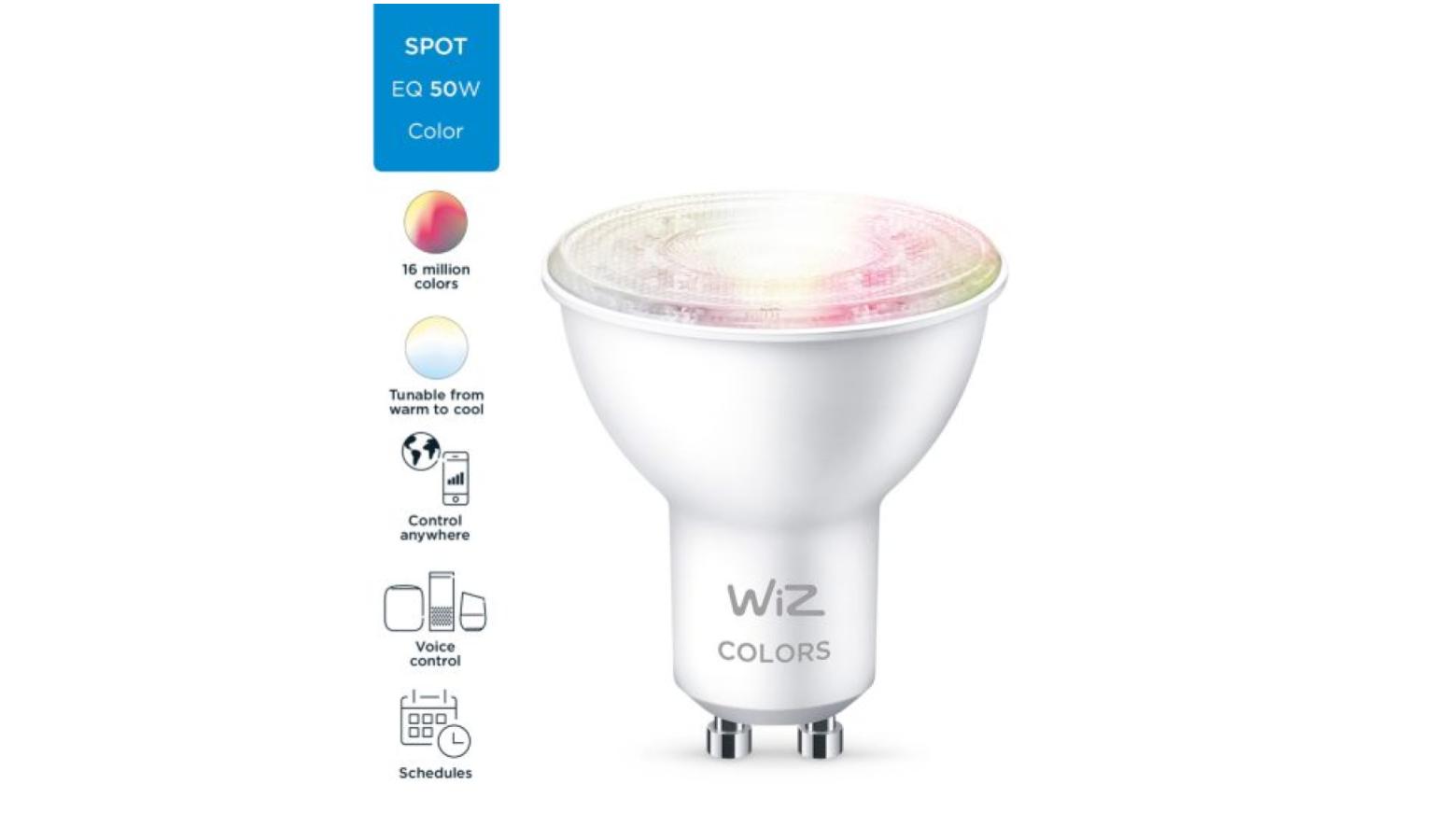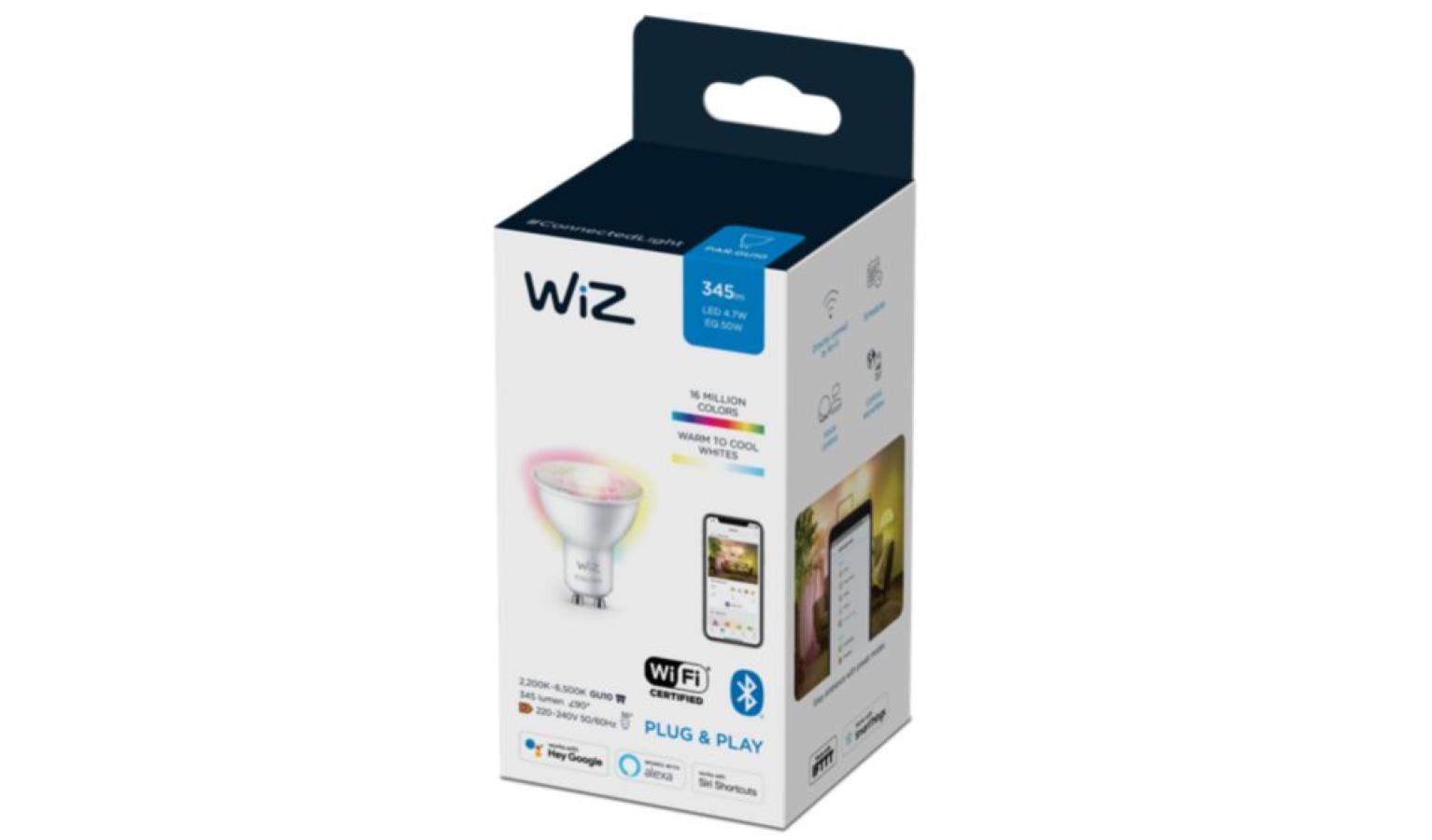 Add diffused, colourful smart light to the standard recessed fixtures or spotlights in your home with the WiZ full-colour GU10 bulb. Use with the WiZ app or your voice to dim and brighten or use preset light modes on Wi-Fi setups. Now available at Harvey Norman Malaysia.