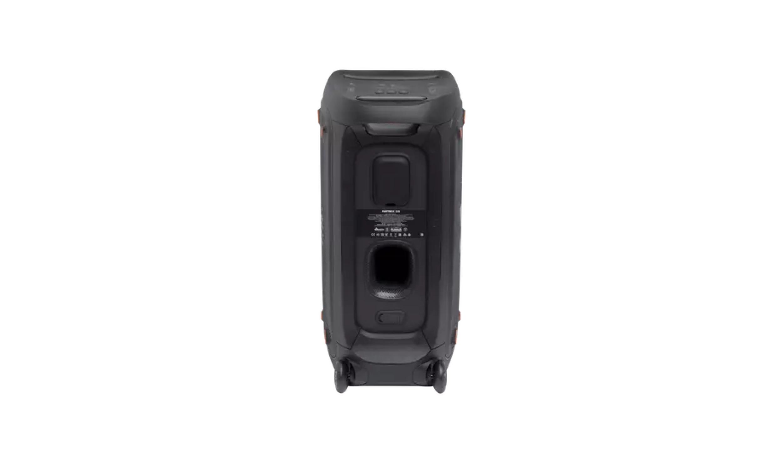 Huge sound, dazzling lights and unbelievable power set this speaker apart from the crowd. The JBL PartyBox 310 packs a full party into a transportable, splashproof sound machine like no other. Turn up your favorite playlists anywhere, from get-togethers at home to dance parties on the beach. Bring big party vibes with 240 watts of JBL Pro Sound and a synced light show that grooves to the beat. Plug in and keep the fun going all night or wheel over to the campfire and take advantage of its impressive 18-hour battery life. Start a party with the JBL PartyBox 310.